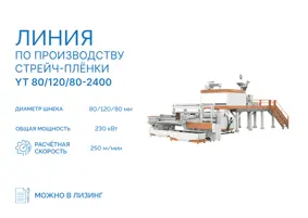 Компания «Мировое оборудование» располагает широким ассортиментом плоскощелевых станков для производства стрейч пленки с различной производительностью. В нашем каталоге представлены модели со следующими характеристиками работы: