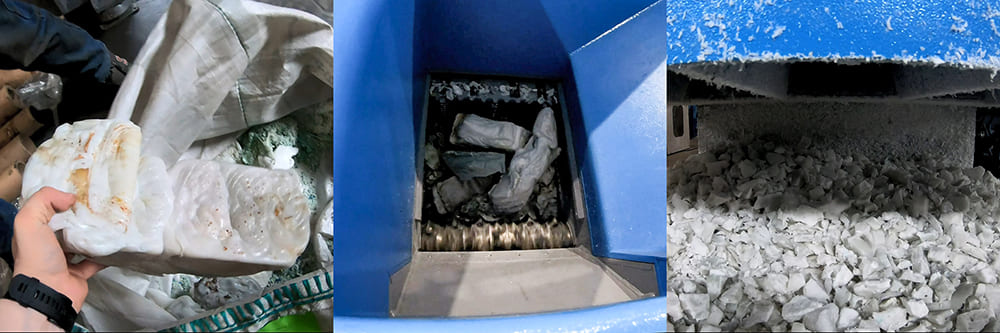 Двухвальные модели применяются по отношению к поддонам, канистрам, биг-бэгам, резиновым изделиям и шинам от автомобилей, пленкам, бочкам и т.д.