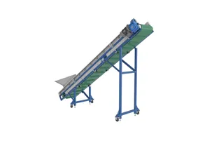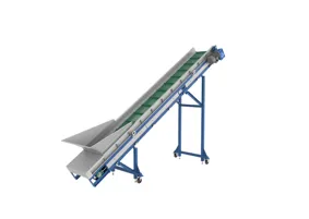 Для различных видов сырья может понадобиться определенный конвейер или транспортер. Например, для крупногабаритной продукции и коробок использоваться гладкий ленточный приводной конвейер. Если речь идет о транспортировке дробленой пленки или сыпучих материалов крупной фракции, то используется конвейеры с желобами.
