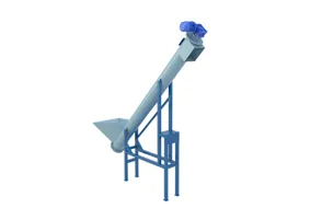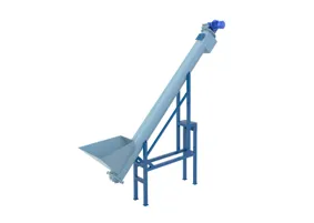 Загрузочные конвейеры шнекового типа отличаются конструкцией и принципом работы. Они имеют шнек, который вращается внутри герметичного корпуса и обеспечивает движение сырья вдоль своей оси. Сырье подается в следующую установку через выгрузной патрубок.